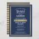Peux-tu garder un secret ? famille d'Invitations et amis à une fête d'anniversaire de surprise élégante et passionnante avec des invitations personnalisées navy blue, white et faux or foil de l'or. Toute la formulation de ce modèle est simple à personnaliser, y compris le message qui dit "Shhh! C'est une SURPRISE." Le design se compose d'une bordure rayée moderne, d'une typographie art déco vintage classique et d'une calligraphie stylisée. Veuillez noter que l'or est imprimé en couleur foncée, pas en feuille métallique. Félicitations et bon anniversaire !