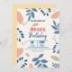 Célébrez dans le style avec cette invitation à l'anniversaire élégante et moderne avec un charmant motif en feuille fleurie dans les tons bleu doux, pêche et beige. Le design comprend une typographie élégante avec des détails de nom, date, heure et emplacement modifiables, ce qui en fait le modèle personnalisable idéal pour votre prochain bain d'anniversaire. Que vous planifiez une fête de jardin, une réunion intérieure ou un dîner intime, cette invitation donne le ton avec grâce et charme. Entièrement personnalisable : Personnalisez le texte, les couleurs et les polices à l’aide de l’outil de conception de Zazzle. Parfait pour : - Fêtes d’anniversaire pour femmes - Fêtes de filles Ados - Fêtes d’anniversaire d’été - Fêtes d’anniversaire en plein air et brunch