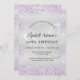 Une invitation d'anniversaire moderne, élégante et minimaliste. Arrière - plan à l'aspect argent faux décoré avec des étincelles de parties scintillant violet et un butterlfy comme filigrane. Personnalisez et ajoutez vos noms et les détails du mariage. Lettres de couleur noire.
