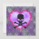 Invitation d'anniversaire gothique Rose Pourpre Un damas gothique violet délavé avec des accents roses sur fond blanc. Entourant un cœur punk dégoulinant délabré et un classique crâne et des os croisés de Poison. L'invitation peut être personnalisée pour tout événement, il suffit d'utiliser les zones de modèle pour changer toutes les informations selon vos besoins.