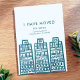 Invitation Annonce de déménagement bleu avec des bâtiments ré