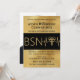 Faire-part d'invitation à une fête de remise de diplômes pour infirmières et infirmiers BSN RN LPN, or. Motif de feuille dorée factice et symbole médical caducée avec une ligne de rythme cardiaque. Convient à la fois comme invitation à une fête de remise de diplômes ou comme annonce de remise de diplômes. La photo sur le verso est facultative. Ajoutez un nom, un diplôme d'infirmière ou d'infirmier, les détails de l'année de la 'promotion' à cette invitation élégante à une fête de remise de diplômes sur le thème noir et or. Typographie calligraphique moderne chic avec une ligne de rythme cardiaque et le symbole du caducée des soins de santé - qui peut également être supprimé ou remplacé par votre propre illustration. Parfait également pour les cérémonies de remise de l'épingle d'infirmière ! Recherchez les fournitures et décorations de fête assort