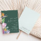 Cette annonce de fuite en amoureux tropicale et colorée | verte est parfaite pour votre évasion moderne bohème verte, violette et pêche. Le design présente un élégant bouquet de verdure et de fleurs classiques de plage à l'aquarelle, y compris l'eucalyptus vert sauge, la protéa mauve et rouge, l'hibiscus rose blush, l'oiseau de paradis orange et bleu, et la feuille de palmier vert foncé. Le design est idéal pour un mariage de voyage simple, créatif et unique au printemps, en été, en automne ou en hiver ! Veuillez trouver d'autres papeteries de mariage assorties ou coordonnées dans le reste de la collection.
