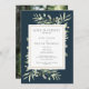 Avec une délicate verdure aquarelle sur un fond bleu mer profond, cette carte chic d'annonce de mariage botanique peut être personnalisée avec votre photo spéciale et les détails de votre jour de mariage. Conçue par Thisisnotme©