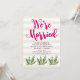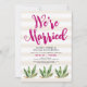 Cette invitation élégante et amusante pour la réception après mariage présente des illustrations de cactus, avec une typographie rose foncé sur un fond rayé neutre, pour un look désertique glamour. L'art rayé est issu de Indie Grace Designs.