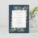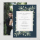 Avec une délicate verdure aquarelle sur fond bleu marine, cette carte chic d'annonce de mariage botanique peut être personnalisée avec votre photo spéciale et les détails de votre jour de mariage. Conçue par Thisisnotme©