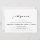 Pour les couples qui souhaitent un design de mariage simple mais élégant. Elke Clarke © Le design présente les noms des mariés dans une police d'écriture élégante avec le mot "reporté". Affiché en noir et blanc mais peut être personnalisé selon les couleurs de votre mariage pour le texte et l'arrière-plan. Ajoutez d'autres éléments graphiques, photo ou monogramme pour personnaliser ce modèle.