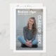 Annonce de remise de diplôme avec votre photo sur un fond blanc uni (Le texte et l'arrière-plan sont entièrement personnalisables pour que vous puissiez le rendre vôtre.) Ajoutez votre nom, votre école et la date de remise de diplôme au recto. Le verso de la carte est rempli d'informations sur vos années de lycée, vos réalisations et vos projets d'avenir.