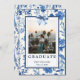 Annonce de remise de diplôme avec nœud papillon bleu en toile Coquette avec un motif classique bleu de toile de Jouy au verso.