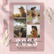 Annoncez la réussite de votre diplômé avec style avec cette moderne annonce de remise de diplôme en collage photo rose poussiéreux. Avec quatre emplacements de photos personnalisables, une typographie de script élégante et des tons de sauge doux, ce design allie parfaitement sophistication et personnalisation. Idéal pour partager des souvenirs et célébrer cette étape importante avec les amis et la famille.