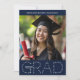 Un texte doré sur fond noir avec un arrière-plan de confettis dorés et une typographie moderne est idéal pour cette annonce de remise de diplôme. Il suffit d'ajouter votre photo, l'année de remise de diplôme et le nom du diplômé.