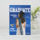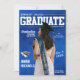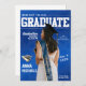 Annonce de remise de diplômes de style magazine avec photo de corps entier remplaçable et informations sur la cérémonie modifiables, nom de l'école, année de remise des diplômes et plus encore.