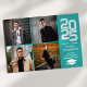 Annonce de remise de diplômes moderne sarcelle avec collage photo carré. Cette annonce de remise de diplômes moderne présente un design simple de collage de 4 photos carrées. Personnalisez ce design sur mesure avec votre propre texte et photo au verso.