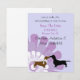 De charmantes annonces de mariage 'Save the Date' réalisées en bleu pervenche, avec une grande fleur stylisée violette et blanche. Des graphiques représentant un teckel marron et un teckel noir, avec des cœurs de lavande entre eux, ornent le bas de la carte. Tous les textes sont personnalisables pour répondre à vos besoins. C'est charmant pour les amateurs de teckels et une excellente façon d'annoncer votre mariage à venir à vos invités de l'extérieur.