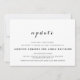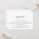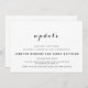 Pour les couples qui veulent un design de mariage simple et élégant. Elke Clarke © Le design présente les noms des mariés dans une police script élégante avec le mot "mise à jour". Affiché en noir et blanc, mais peut être personnalisé selon vos couleurs de mariage pour le texte et l'arrière-plan. Ajoutez d'autres éléments graphiques, photos ou monogramme pour personnaliser ce modèle.