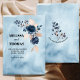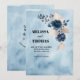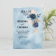 Annonce/invitation minimaliste de sauvegarde de date à l'aquarelle bleue avec arrangement floral bleu royal. Disposition simple et épurée avec image de fond. Téléchargez facilement votre propre image ou photo pour la rendre unique. Changez les polices, la couleur et les libellés. Avec l'option de télécharger et d'envoyer votre annonce par voie électronique.