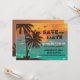 Un beau design tropical avec des eaux turquoise et un grand coucher de soleil. Envoyez une annonce "Save the Date" avec une carte attrayante.