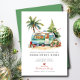Cette annonce de déménagement festive présente le dicton "Vœux de Noël depuis notre nouvelle maison douce maison" avec une belle caravane rétro avec des palmiers et des décorations de Noël. L'annonce est parfaite pour être envoyée aux amis et à la famille pendant la période des fêtes pour leur faire connaître votre nouvelle adresse. Le recto de l'annonce présente le dicton et la scène de caravane rétro, et comprend votre nouvelle adresse et vos coordonnées. La conception globale est festive et unique, et l'annonce est sûre de mettre un sourire sur le visage de vos proches.