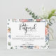 A dû reporter votre événement ? Pas de problème, informez vos invités avec cette belle carte d'annonce de report de mariage (ou tout autre événement). Magnifique fond floral aquarelle peinte à la main encadrant vos détails de report avec des fleurs et du feuillage dans des tons rose blush, pêche, rose poussiéreux, bleu poussiéreux, pêche et vert sauge. Détails de typographie Script manuscrits modernes élégants. Possibilité de l'utiliser pour n'importe quel événement. Espace pour ajouter votre propre message. Dos dans un ton bleu poussiéreux qui peut être modifié en sélectionnant personnaliser.