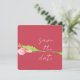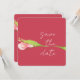 Un design floral simple et élégant avec des couleurs rouge, blanc et vert pour une carte d'annonce de sauvegarde de date ! Une jolie fleur de calla lily pastel rose décore la carte de manière esthétique des deux côtés.
