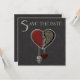 Une invitation gothique de sauvegarde de la date : cœur de bijouterie gothique en rouge et noir avec crâne argenté sur fond gris foncé.