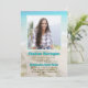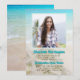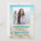 Annonce de remise de diplôme sur le thème de la plage. Étoile de mer et fleurs blanches, avec une conception de fond de mer et de sable. Ajoutez sa photo pour remplir le modèle carré. Personnalisez le texte bleu aqua pour le nom et le titre de la fête (réception de remise de diplôme). Le texte marron imprimé est utilisé pour le nom de l'école, l'année de la promotion, la spécialité et toutes les informations sur la fête. Cette invitation est également disponible en téléchargement instantané.