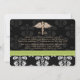 Ajoutez votre photo ou votre photo préférée à ces annonces de graduation d'une école d'optométrie en noir et blanc, élégantes et formelles, ainsi qu'à des invitations avec un caducée de serpent d'or et un motif imprimé de ruban piqué vert citron pour le dentiste diplômé. Customisez-le de dire ce que vous voulez sur le dos et devant de ces invitations à la graduation optométriste avec les initiales D.O. sur le dos. Oeuvre © Chrissy H. Studios, LLC. Tous droits réservés.
