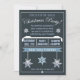 Invitation annuelle de fête de Noël avec une sensation moderne. Nuances de bleu et de blanc avec des flocons de neige, des piles de neige et le ruban de bannière sur l'avant.
