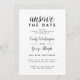 Waouh ! Nous vivons des moments incroyables ! Ne vous stressez pas lorsque les choses tournent mal. Il est temps de changer de cap ! Vous aurez besoin d'un peu d'espace pour vous ressaisir, vous adapter et trouver de nouvelles façons de replanifier et peut-être même réinventer votre occasion spéciale. Laissez-nous vous aider ! Ces cartes classiques de report d'événement noir et blanc comprennent un message texte fixe dans une police d'écriture chic avec une police de caractères sans serif moderne pour votre message. Parfait pour toute occasion que vous devez reporter ou replanifier. Faites savoir à vos invités que vous devez reporter l'événement sans perdre votre calme avec ce design classique intemporel. Ne soyez pas déçu. Vous avez maintenant le temps de rendre votre nouvelle célébration encore plus comme vous l'avez toujours souhaité ! Rappelez-vous : des événements imprévus arrivent et vos invités comprendront ;-) Si vous avez besoin d'un coup de main, contactez-nous sur le chat Zazz