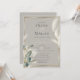 Envoyez vos invitations de fiançailles dans le même thème que votre mariage. Les invitations chic Smokey Turquoise Anthurium Pampas Grass apportent une touche moderne et romantique à tout mariage. Un arrière - plan taupe aux champignons chauds accueille une gazon de pampas couleur crème et des feuilles d'anthurium bleu turquoise, avec deux lignes réfléchissantes dorées le long des bords. Une combinaison de calligraphie de script combinée à une disposition de texte minimaliste de style contemporain en fait une suite mariage de style tendance. Il fait partie d'une collection de papeterie mariage avec accessoires mariages assortis. Oeuvre originale de © WhimsicalArtwork™ créée pour BarefootBride™
