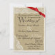 dentelle blanche vintage sur l'aspect rustique de burlap avec un joli arc rouge. Customisez avec votre propre texte et vos détails. Toutes les parties de ces invitations sont imprimées. Il n'y a pas de ruban, de dentelle ou de burlap réel connecté.