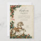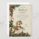 Venez fêter les fêtes nostalgiques de Noël avec ce charmant modèle de fête de Noël à cheval à bascule vintage. Avec un cheval blanc à bascule magnifiquement illustré encadré de verdure festive, d'arcs et de saints, cette invitation capture la magie d'un rassemblement traditionnel de vacances. Parfait pour les fêtes de Noël en famille, les dîners festifs ou les soirées saisonnières, il ajoute une touche d'élégance intemporelle à votre événement de vacances. Personnalisez facilement avec vos détails pour une conservation vraiment unique.