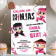 Invitation Appel à toutes les filles Ninjas roses Anniversair