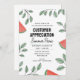 Cette invitation de pique-nique d'été à l'appréciation du client comporte une bordure de coins de pastèque et de branches de feuilles verts. Personnalisez cette simple invitation à thème d'été avec tous les détails de votre événement.