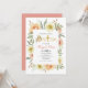 Peach-coral aquarelle fleurs fille baptism invitation florale. Ce magnifique design présente un cadre fleuri composé de pêche, de fleurs roses et blanches de corail, de feuilles succulents verts et de votre texte. Le mot "Baptême" est en or dans une police décorative avec un bouquet floral tandis que le nom de la fille est en typographie de script. Au lieu de la lettre "I" dans le mot "Baptême il y a une croix de parties scintillant d'or.