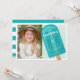 Détendez-vous avec ces invitations à la fête d'été pour votre petit garçon. Un design estival amusant présente une illustration turquoise brillante sur un arrière - plan aqua léger. Personnalisez avec vos détails de fête en lettres blanches de style rétro, et ajoutez une photo de l'enfant d'anniversaire pour une touche spéciale supplémentaire.