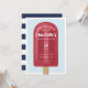 Détendez-vous avec ces invitations à la fête d'été pour votre petit garçon. Un design estival neutre et amusant, dans une palette de couleurs rouge, blanc et bleu festif, est illustré d'une image rouge popsicle sur un arrière - plan bleu ciel clair. Personnalisez avec vos détails de fête en lettres blanches de style rétro.