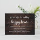 Belle fête After the wedding Happy Hour, Invitation, Carte d'annonce / invitation de mariage élitiste, avec un thème de fond en bois sombre rustique, design simple et minimaliste. C'est parfait pour votre réception de mariage et votre fête de célébration post-mariage. Ajoutez vos détails avec une police / lettrage assorti.