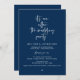 Annoncez et partagez votre bonheur toujours après dans le style avec notre design moderne marine bleu thème (C'est un après la fête de mariage) mariage elopement de la carte d'invitation de célébration. Idéal pour les couples qui ont décidé de célébrer leur meilleure journée. Avec son design sophistiqué et ludique, cette invitation vous donnera le ton pour un événement inoubliable. La carte d'invitation présente un thème design de script moderne et minimaliste, ajoutant une touche d'élégance intemporelle à votre célébration. Conçu par TeeshaDerrick
