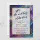 Sur un fond audacieux et artistique avec des éclaboussures d'aquarelle, des diamants noirs et des couleurs vives, j'ai placé un rectangle blanc opaque bordé de faux doré métallisé pour mettre en valeur le texte. La partie supérieure présente une couche de typographie simple qui indique "après la célébration de mariage" dans une police de caractères moderne avec des volutes et des embellissements. Utilisez les champs du modèle pour ajouter vos propres détails. Toutes les couches ont été ajoutées séparément et laissées déverrouillées pour vous donner le contrôle sur le design. // 99 //