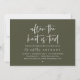Annoncez et partagez votre bonheur toujours après dans le style avec notre design de thème moderne (Après le noeud est lié) mariage elopement de la carte d'invitation de célébration. Idéal pour les couples qui ont décidé de célébrer leur meilleure journée. Avec son design sophistiqué et ludique, cette invitation vous donnera le ton pour un événement inoubliable. La carte d'invitation présente un design moderne, sur le thème vert olive, ajoutant une touche d'élégance intemporelle à votre célébration. Conçu par TeeshaDerrick