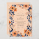 This design showcases a sophisticated color palette of deep navy blue and soft apricot watercolor blossoms. Rich blue foliage creates a striking contrast against the warm peach-toned background. Delicate floral sprigs and large blooms provide a romantic and artistic aesthetic. Perfect for a nature-inspired event, this artwork balances bold tones with elegant, airy details.