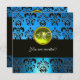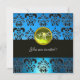 Invitation AQUA BLUE BLACK DAMASK MONOGRAM, topaz jaune