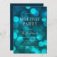 Invitation de fête de vacances chic avec les mots "Fête de vacances" en faux papier argenté contre un aqua bleu boukeh lumières arrière - plan motif qui est parfait pour une fête de vacances pour famille ou amis ou même une fête d'entreprise de vacances. L'invitation a un arrière - plan bleu foncé à l'arrière. Personnalisez cette invitation avec vos détails en remplaçant le texte de l'espace réservé. Pour plus d'options comme changer la police, la taille/la couleur du texte ou l'espacement entre les lettres, cliquez sur le bouton "Personnaliser". *Veuillez noter que le filigrane Zazzle qui apparaît dans l'aperçu du zoom n'apparaîtra PAS sur le produit imprimé final. © Bois de rose et agrumes