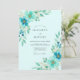 This design features a serene palette of soft aqua and vibrant teal, evoking a fresh and airy atmosphere. Delicate watercolor anemones bloom with artistic grace, accented by shimmering gold leaf details and soft sage green foliage. The ethereal aesthetic is ideal for a romantic seaside or breezy seasonal event.