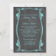 Elégante et tendance Faire-part de mariage Flourish Chalkboard avec un look arrière - plan Chalkboard et une bordure d'art déco tourbillon et feuille chic en turquoise. Facile à customiser, il suffit d'ajouter les détails de votre mariage. Cliquez sur "Customiser" pour trouver d'autres options de personnalisation.