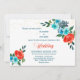 Corail clair et aqua bleu aquarelle bouquets floraux avec feuilles verts décorent deux coins de ce joli faire-part de mariage. Au centre se trouve votre texte personnalisé en turquoise. Les images et le texte sont placés sur un arrière - plan blanc immaculé, et il y a une subtile superposition de confettis dorés en haut. L'arrière de l'invitation est solide assorti à l'aqua foncé. Parfait pour un thème mariage à fleurs avec un look moderne et mis à jour à tout moment de l'année !