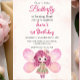 Invitation Aquarelle 1er anniversaire mignonne Girl Papillon