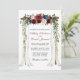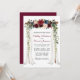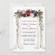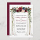 Elégante canopée de mariage Aquarelle Bourgogne Marsala Floral Card comprend de beaux roses bordeaux, roses roses, fleurs rouges et fleurs bleues. L'arche à baldaquin en bois mariage comprend une végétation botanique.