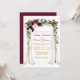 Elégante canopée de mariage Aquarelle Bourgogne Marsala Floral Card comprend de beaux roses bordeaux, roses roses, fleurs rouges et fleurs bleues. L'arche à baldaquin en bois mariage comprend une végétation botanique. Script Gold.